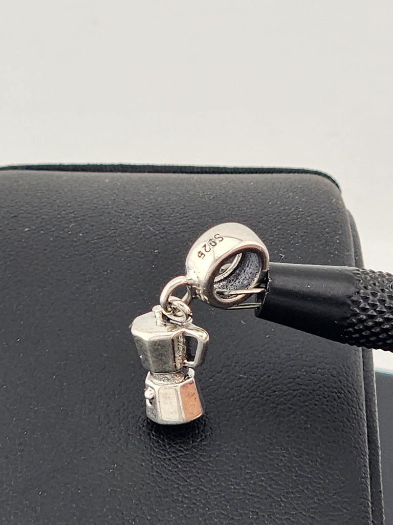 Sterling Silver 925 Coffee Pot Charm | Espresso Maker Pendant | Silver Barista Jewelry Gift