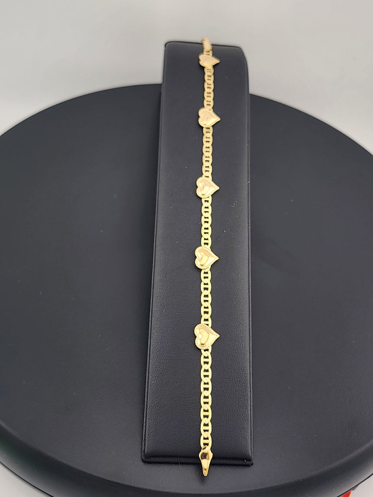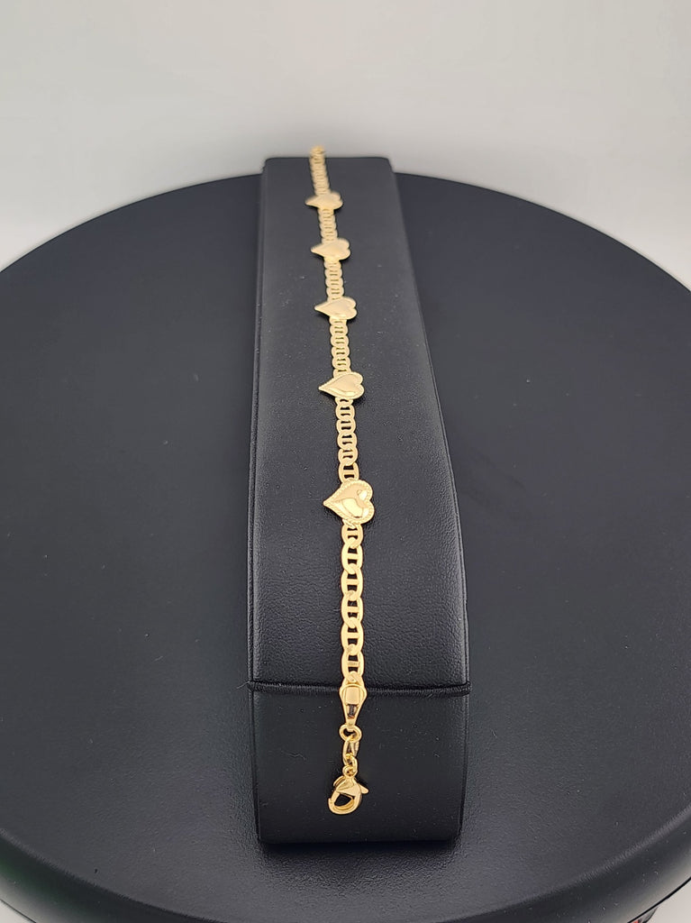 This dainty and feminine piece features five beautifully crafted heart charms, symbolizing love, joy, and connection. Made with high-quality Brazilian 18K gold-filled material, it offers the look and shine of real gold while remaining durable and tarnish-resistant.