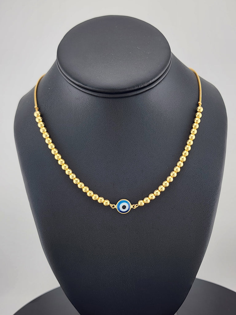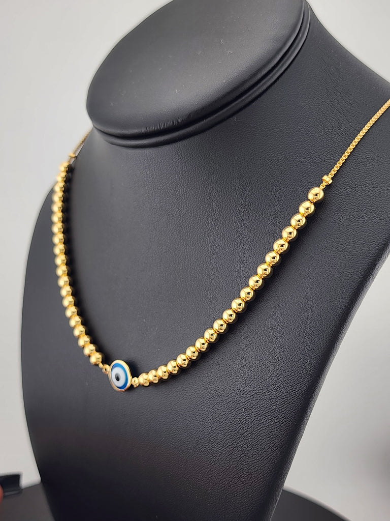 Embrace style and protection with this stunning 18K Gold-Filled Baby Blue Evil Eye Beaded Necklace.
