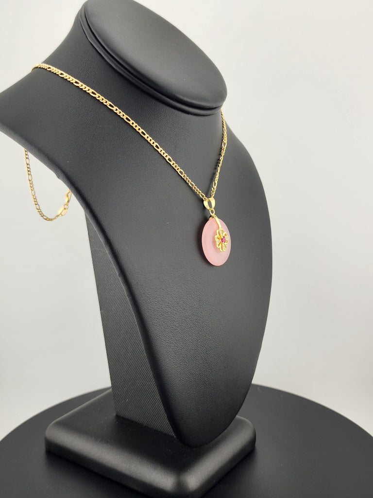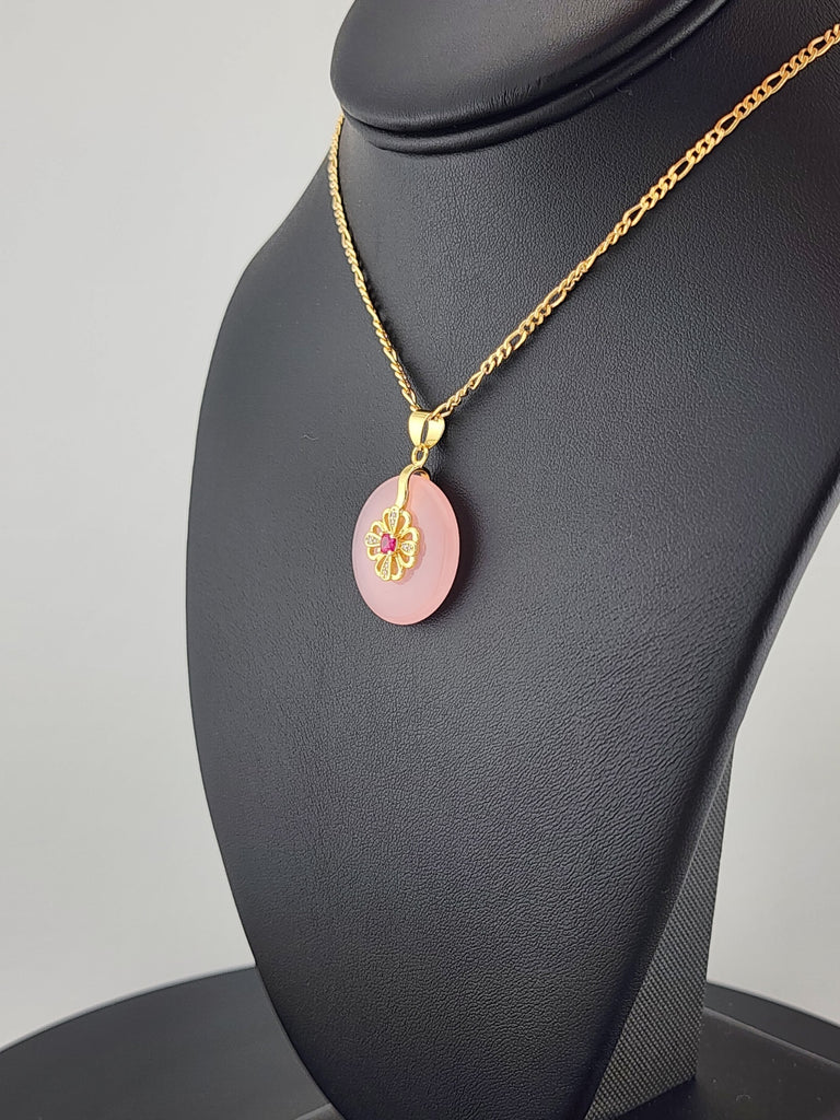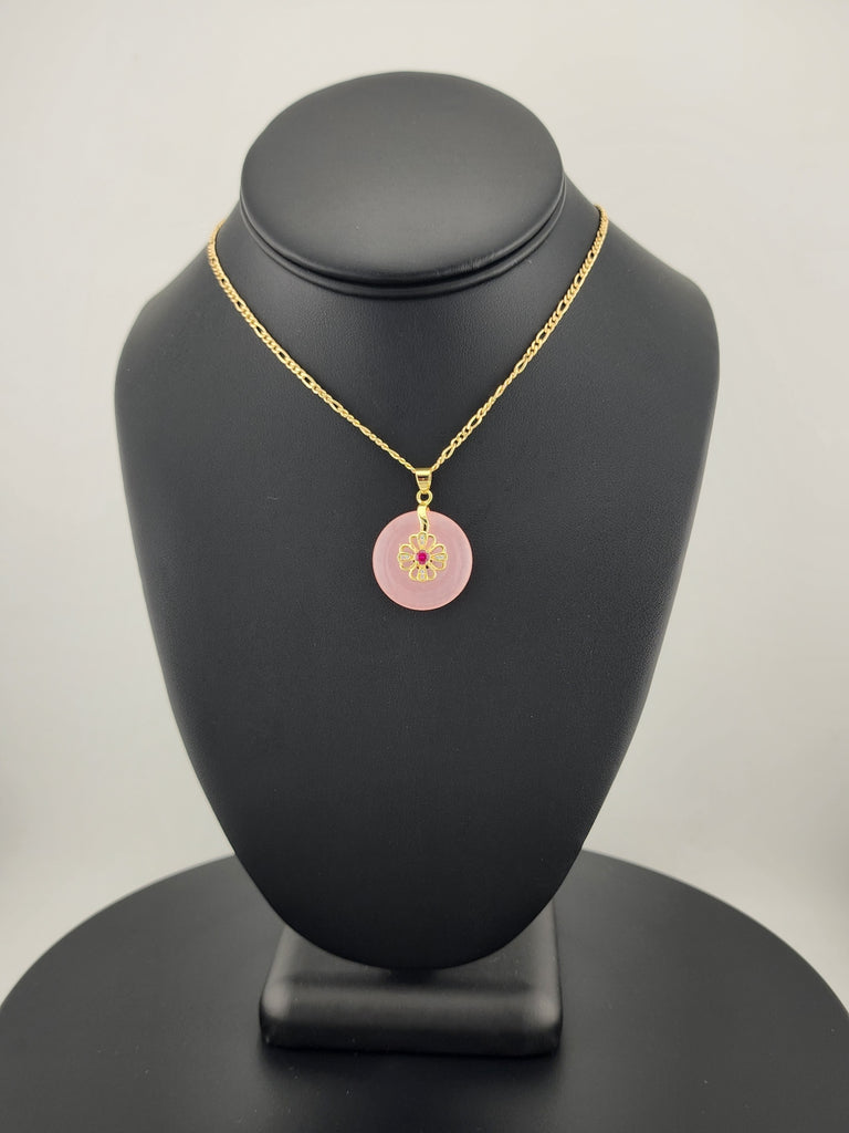 Invite positivity and prosperity into your life with this beautiful Lucky Wheel of Fortune Pendant Necklace. The pendant features a stunning combination of brass and pink agate, symbolizing harmony, balance, and good fortune. Thoughtfully paired with a high-quality gold-filled 20" necklace, this piece blends elegance with spiritual charm.