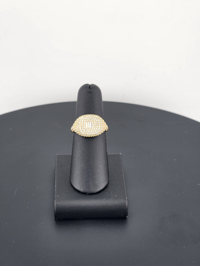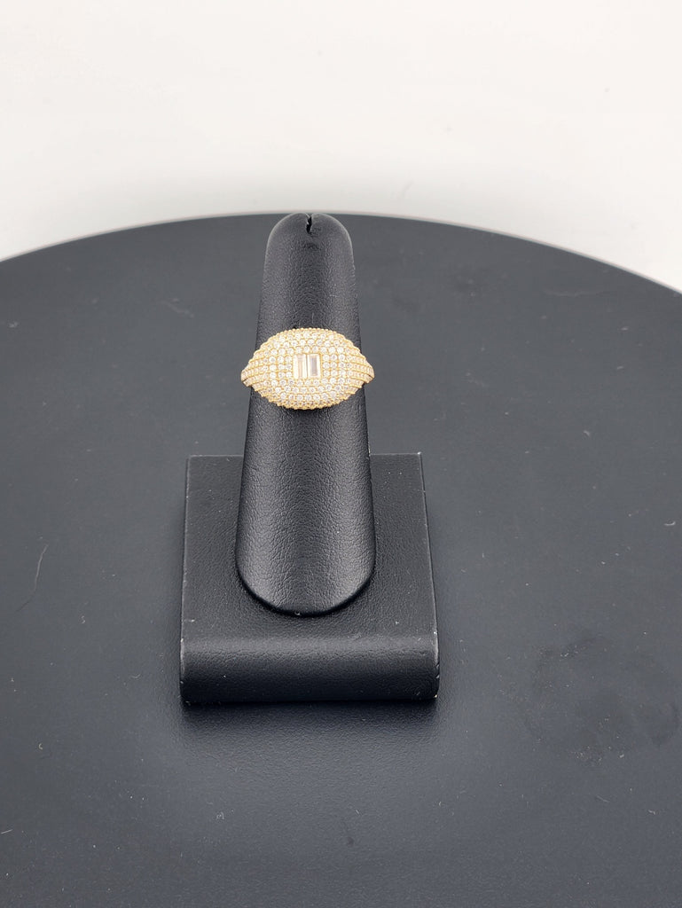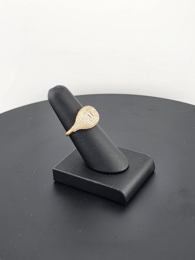 Make a bold and elegant statement with this eye-catching Crystal White ring. Crafted from 925 sterling silver and luxuriously gold-dipped, this stunning piece features a brilliant white gemstone at the center, surrounded by sparkling White cubic zirconia stones that catch the light from every angle.