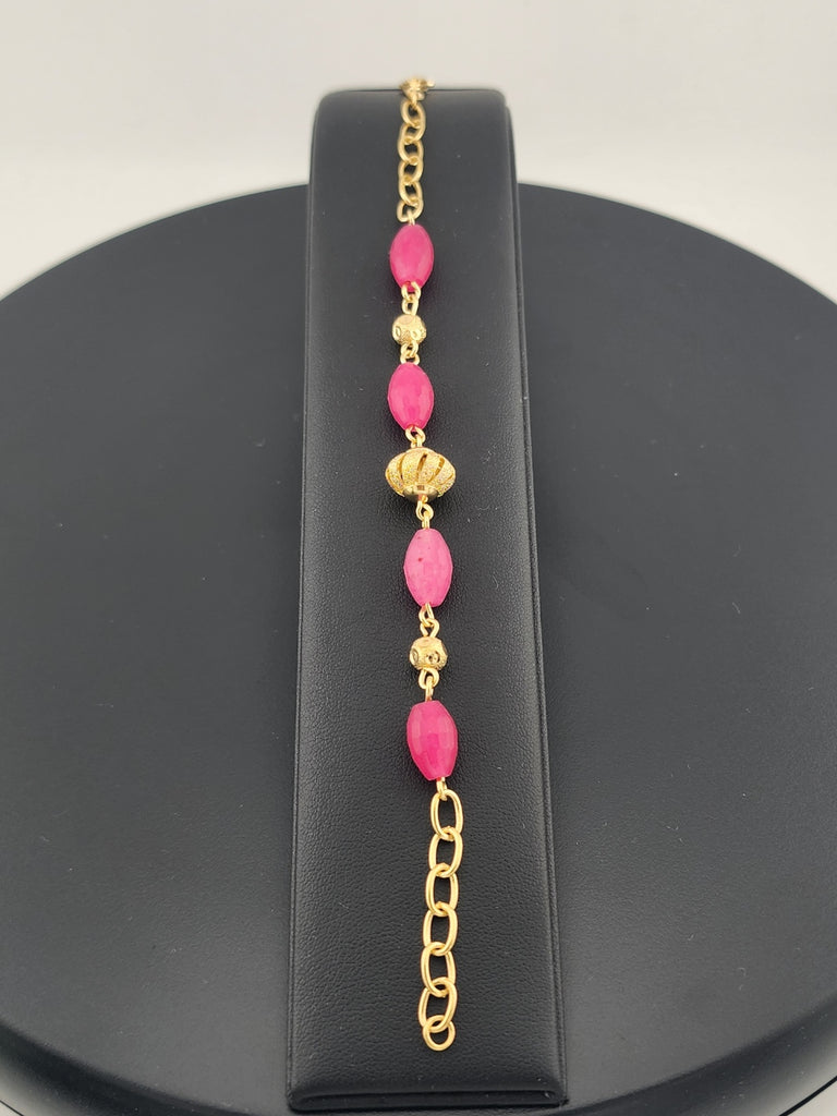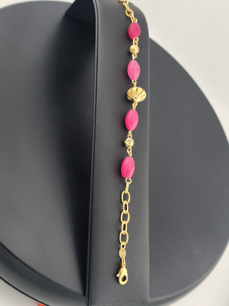 Elegant Brazilian 18K Gold Filled Bracelet with Beautiful Pink Beads