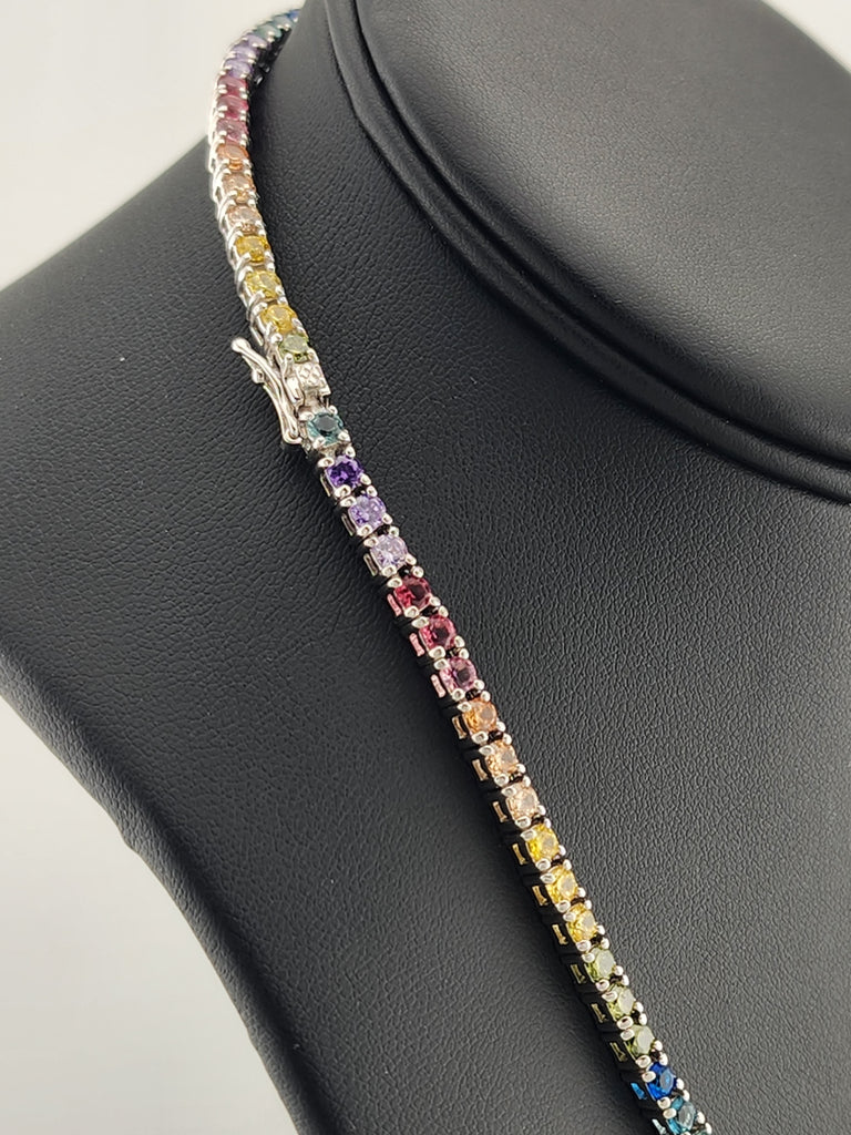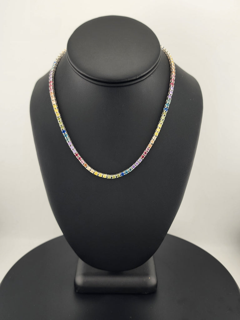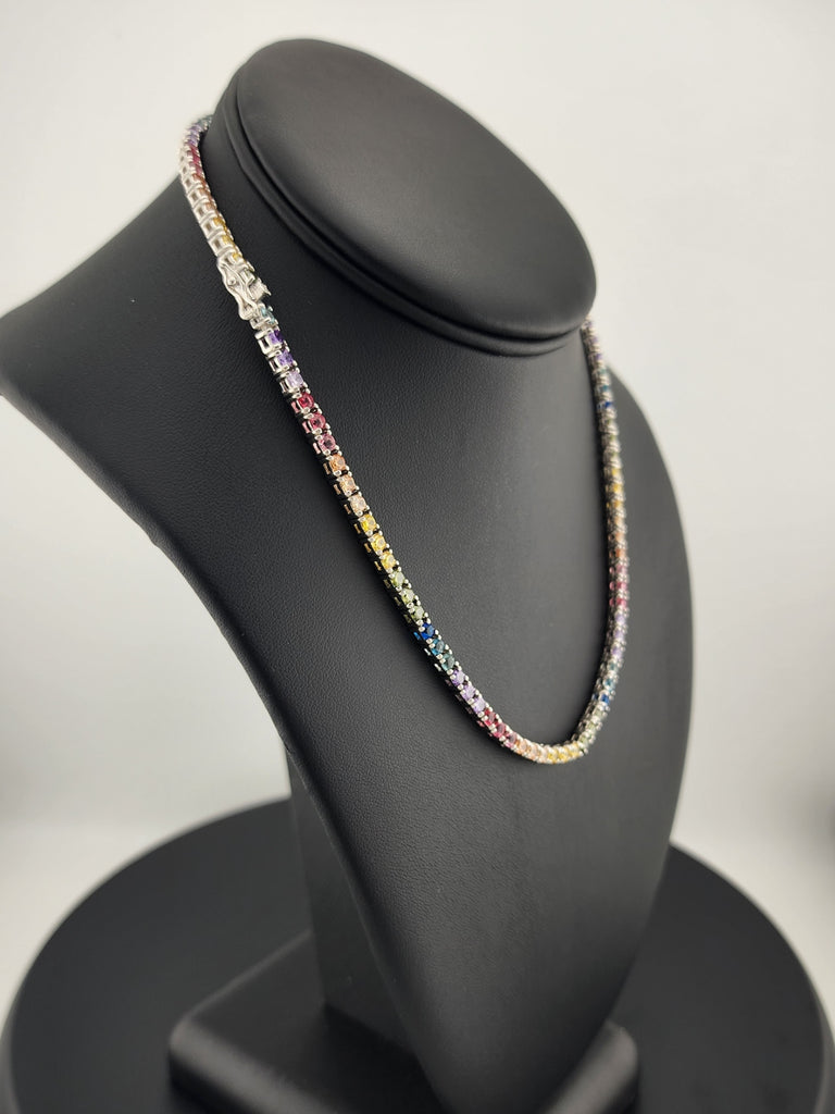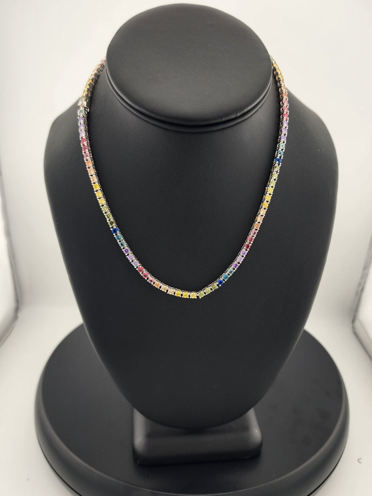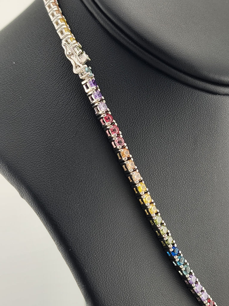 Rainbow Radiance – Sterling Silver Multi-Gemstone Tennis Necklace