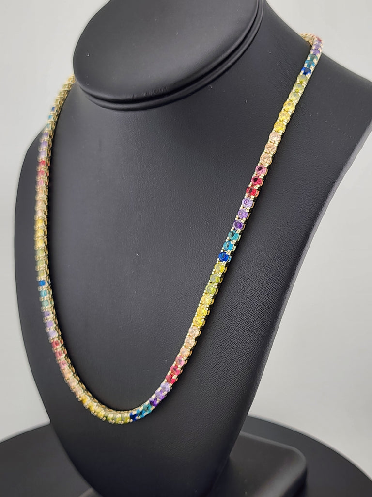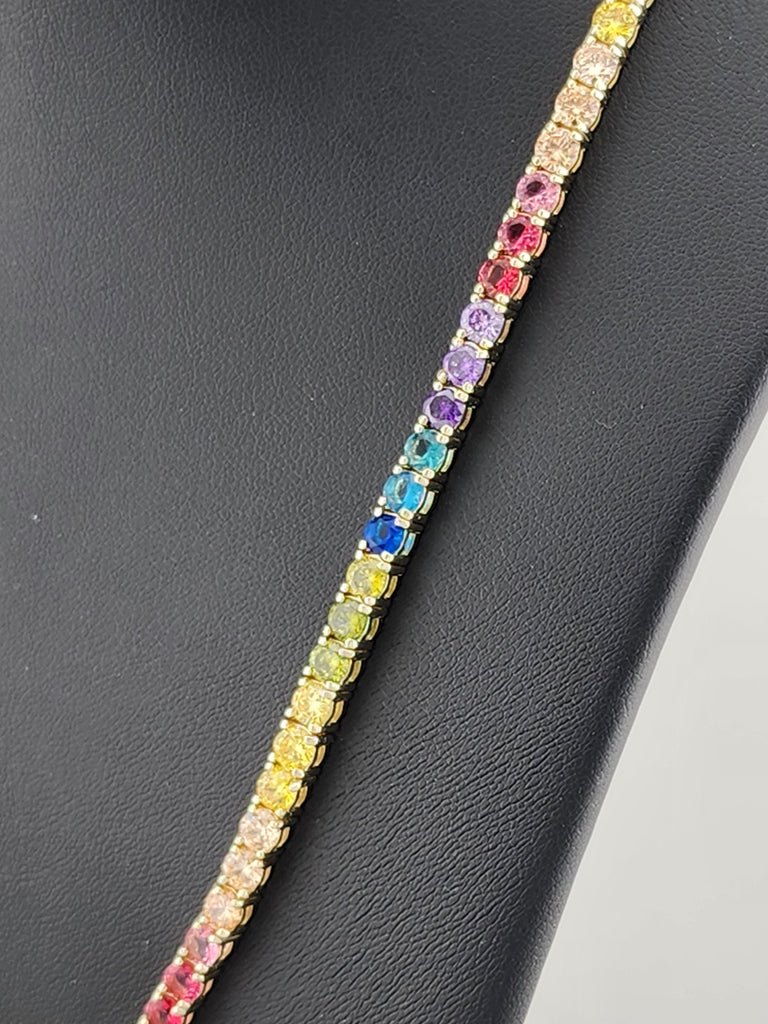 Rainbow Radiance – Sterling Silver Multi-Gemstone Tennis Necklace