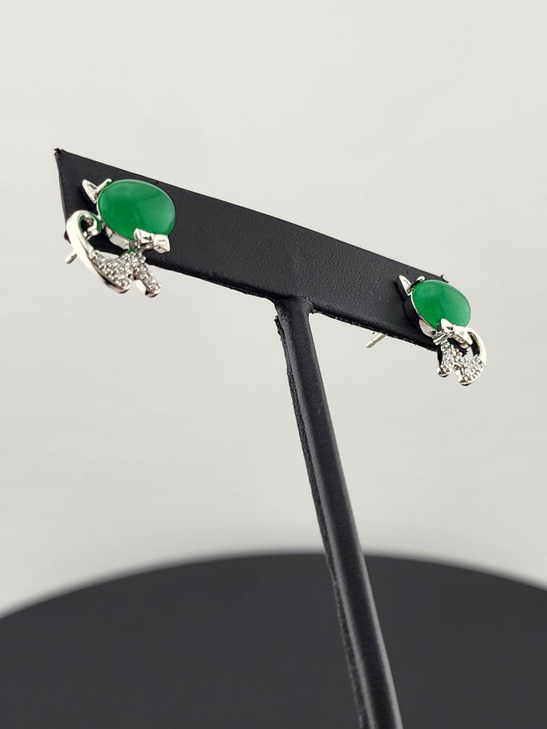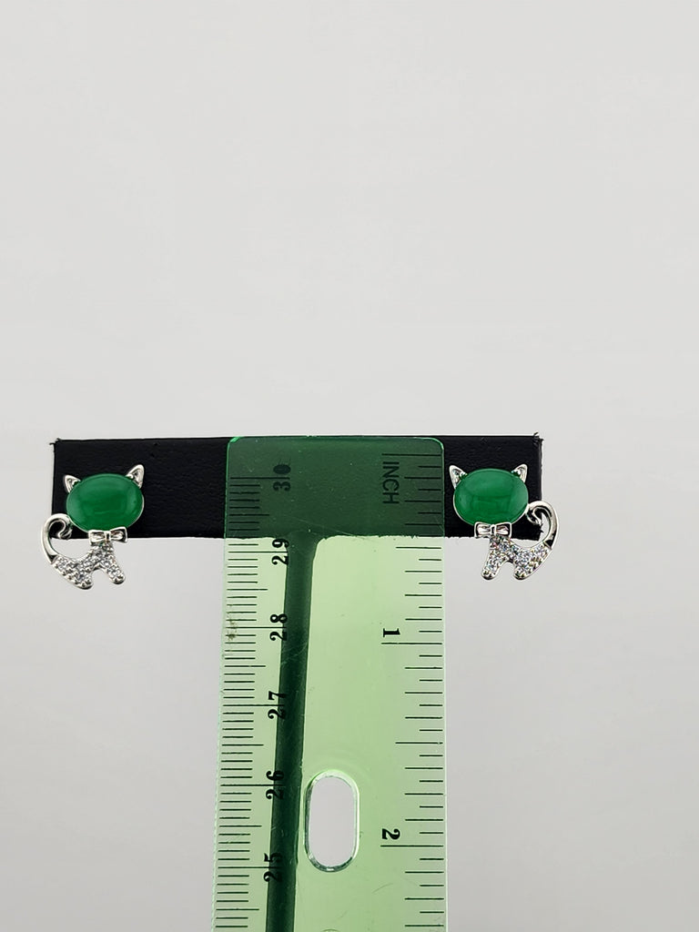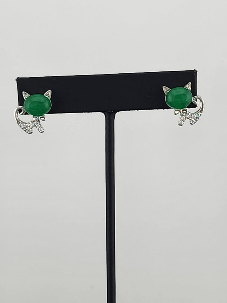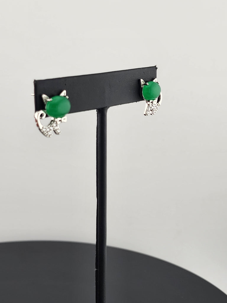 Add a touch of charm and elegance to your look with these whimsical cat earrings. Crafted from durable brass, each earring features beautiful jade accents and sparkling cubic zirconia stones that catch the light with every movement. Perfect for cat lovers or anyone who enjoys playful yet sophisticated jewelry.